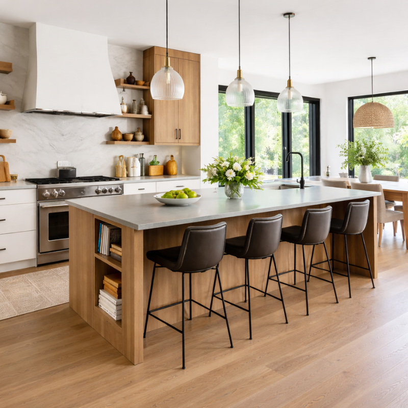 An island with seating is perfect for quick meals, entertaining guests, or supervising children while cooking. When designed thoughtfully, it becomes the bridge between cooking and dining spaces.