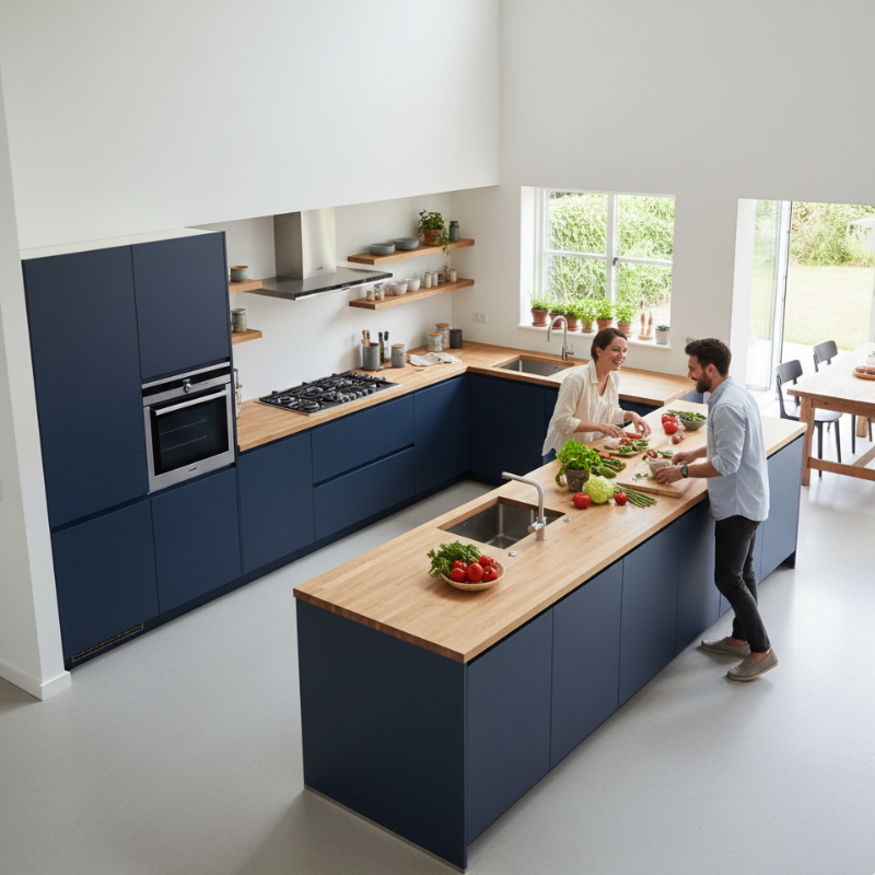Kitchen islands have become a defining feature of modern homes. Whether paired with an L-shaped or U-shaped layout, islands add flexibility and style.
