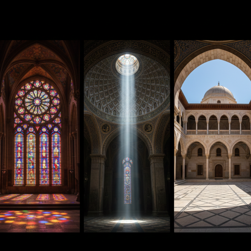 The manipulation of light—through domes, clerestory windows, or courtyards—guides emotional experience and reinforces spiritual symbolism.