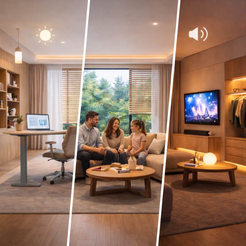 Morning routines may involve bright, cool lighting and automated blinds that open gradually. Evenings can shift the same space into a calm, warm environment suited for rest or socializing. This ability to adapt transforms homes into living environments that actively support well-being rather than passively containing it.