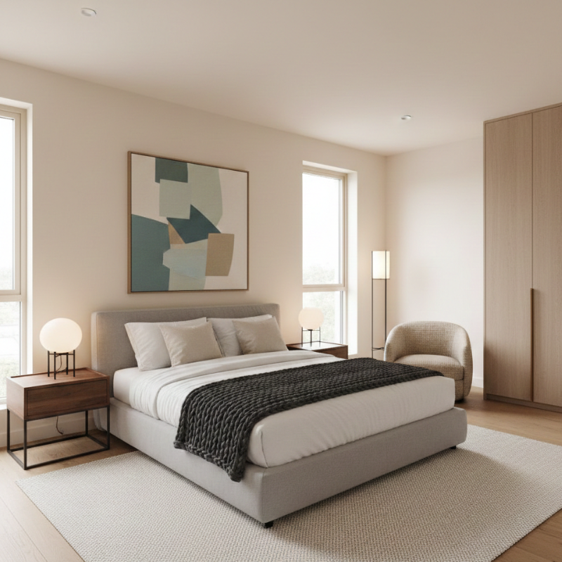 Comfort plays a key role in modern design. Soft furnishings, good lighting, and smart layouts ensure the bedroom supports rest and well-being while maintaining a clean, stylish appearance.