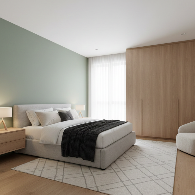 To avoid a flat or boring look, add depth through subtle contrasts. Accent walls in muted shades, warm wooden finishes, or textured fabrics can introduce visual interest without overpowering the room. Soft pastel tones or deep charcoal accents also work well in modern bedroom design when used sparingly.