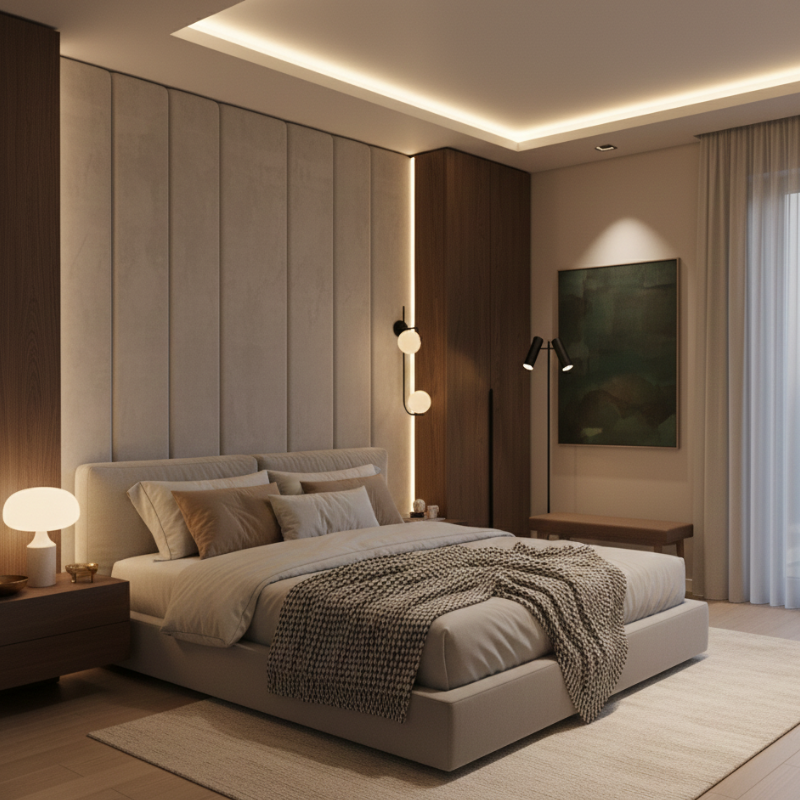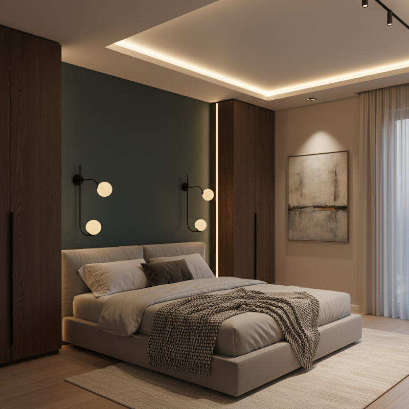 Accent lighting can elevate the design by highlighting textures, artwork, or architectural features. Warm light tones are generally preferred in bedrooms, as they promote relaxation and help create a cozy atmosphere.