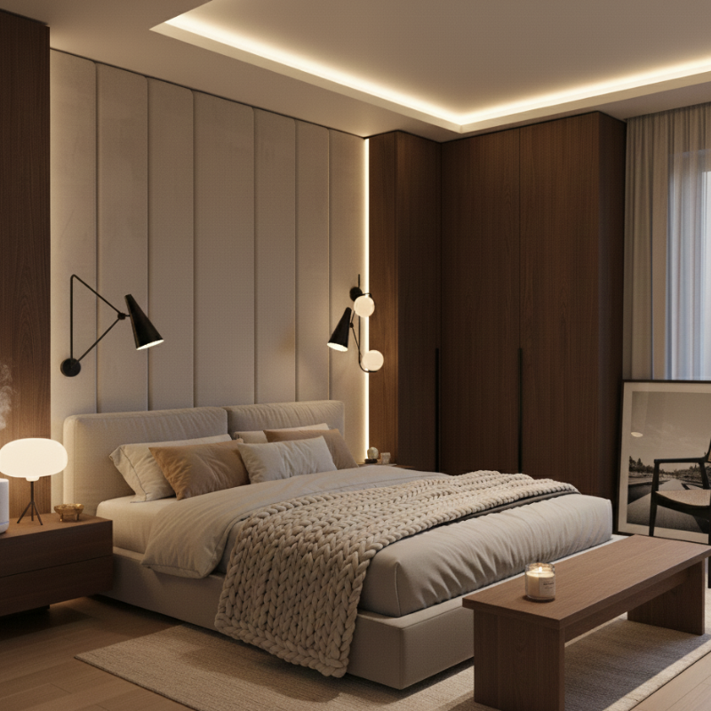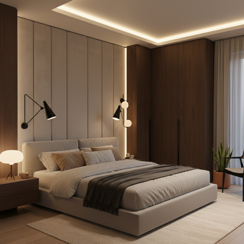 Lighting plays a crucial role in balancing comfort and style in modern bedroom interiors. A layered lighting approach works best. Start with soft ambient lighting to create a warm overall glow. Add task lighting such as bedside lamps or wall-mounted reading lights for functionality.
