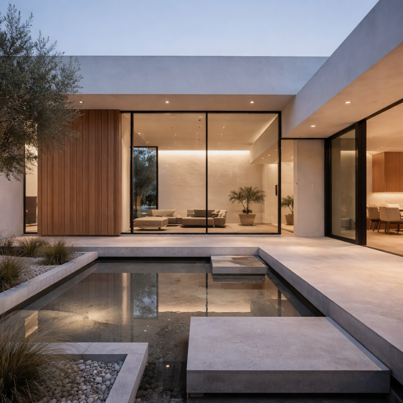 Well-designed modern homes avoid unnecessary ornamentation and instead let proportions, materials, and light define the space.