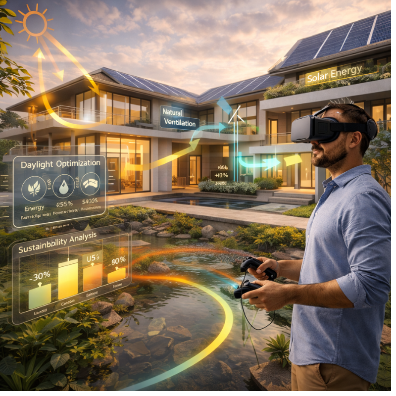 Sustainability is a growing priority in contemporary architecture, and virtual reality plays an important role in supporting responsible design choices. VR allows architects to visualize passive design strategies, such as natural ventilation, daylight penetration, and spatial orientation, in a realistic context.