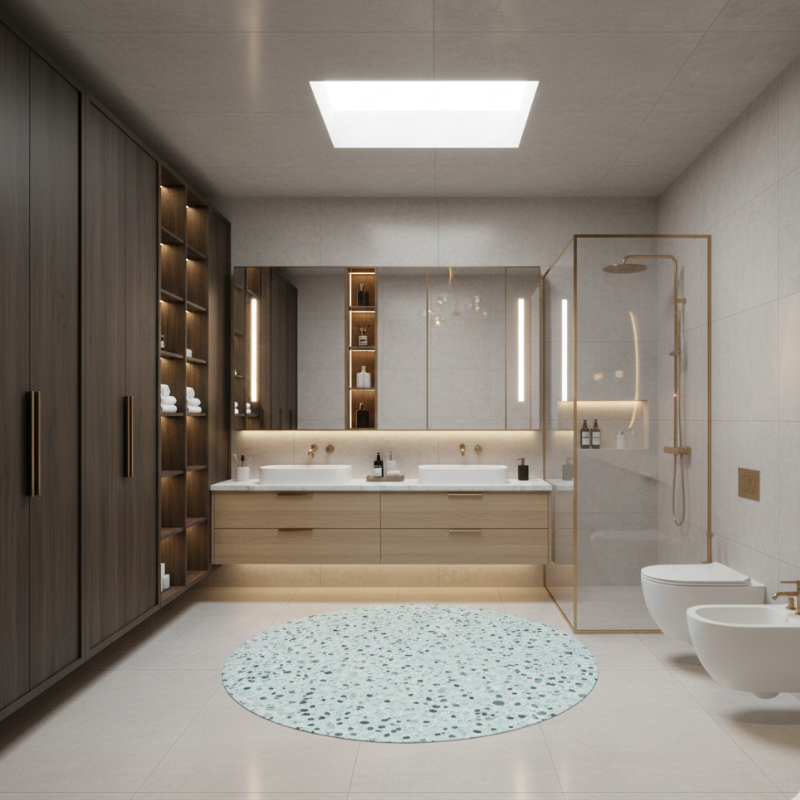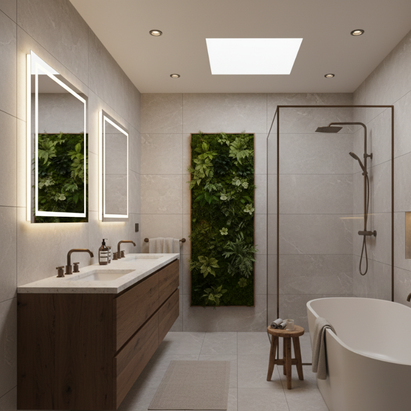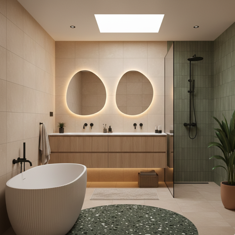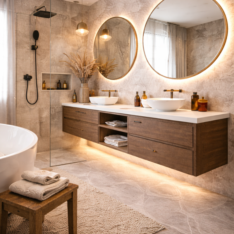 Natural materials are playing a major role in modern bathroom interiors. Stone, marble, terrazzo, and textured tiles are being used to add depth and character without overwhelming the space. Wood accents, when properly treated for moisture resistance, bring warmth and balance to otherwise minimalist designs.