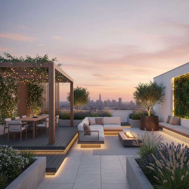 Terraces offer more flexibility and can accommodate layered designs. Zoning is a key concept—separate areas for seating, dining, and greenery create clarity and flow.