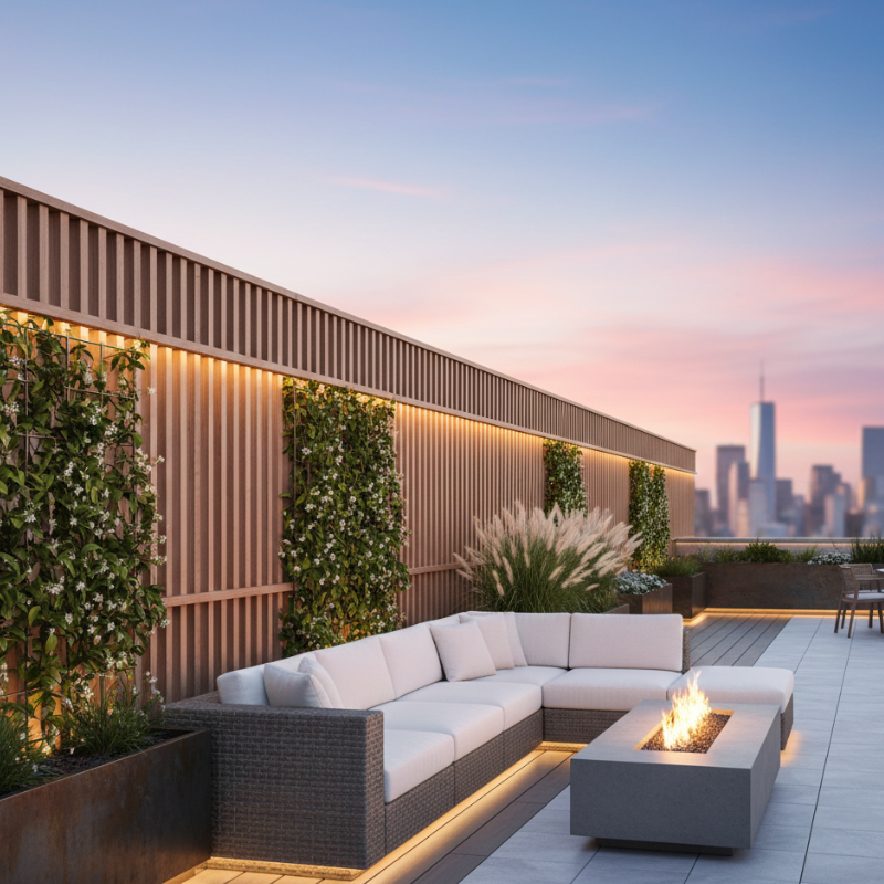 Privacy is a common concern, especially in dense urban settings. Instead of solid walls, consider semi-transparent solutions such as slatted screens, perforated panels, or green walls.